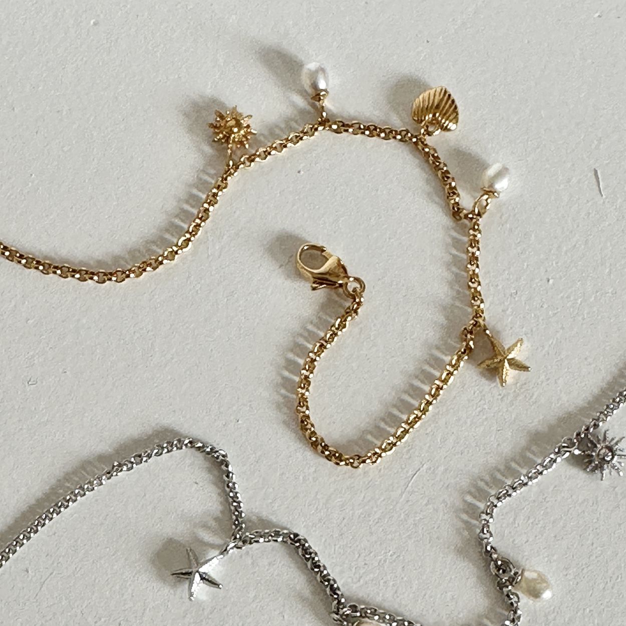 Geinspireerd door de Portugeese zee heeft Kae deze armband ontworpen. Alle elemtenten zoals de zon, haar liefde voor Portugal, een zeester en parels komen terug in deze armband. Deze armband is onderdeel van een familie, met een bijpassende ketting en oorbellen. Deze armband is gemaakt van 925 sterling zilver gerodineerd. Elk 24Kae sieraad is met liefde en oog voor detail ontworpen door Kae Sutherland.