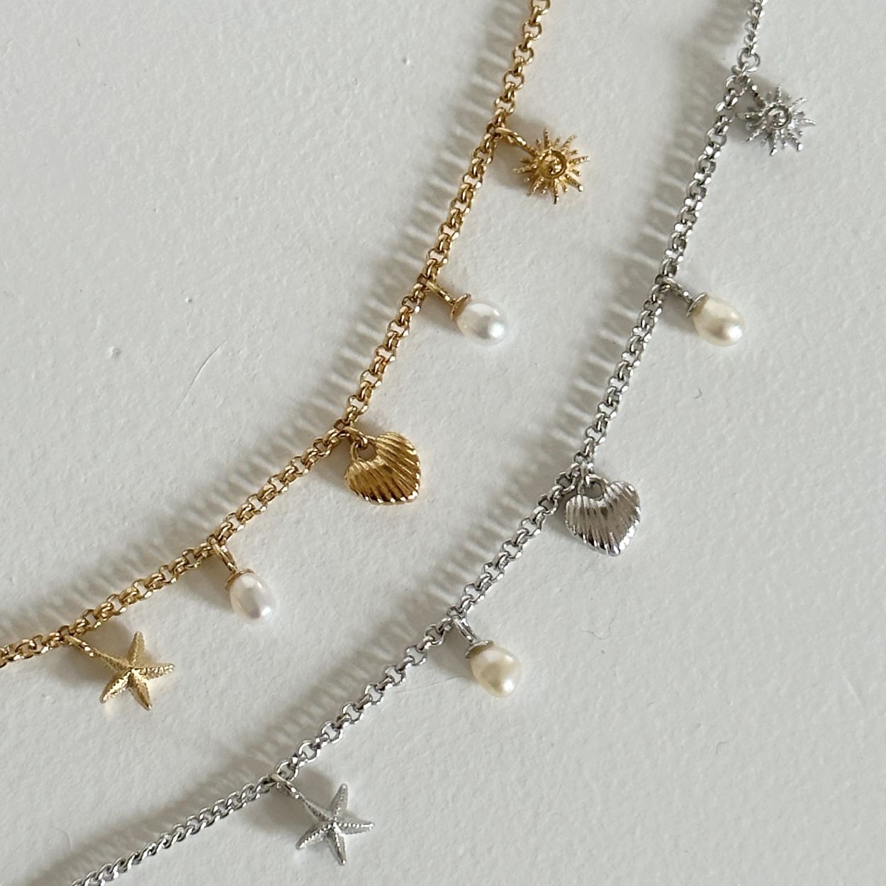 Geinspireerd door de Portugeese zee heeft Kae deze familie ontworpen. Alle elemtenten zoals de zon, haar liefde voor Portugal, een zeester en parels komen terug in deze ketting. Perfect om te combineren met de bijpassende items uit deze collectie! Deze ketting is gemaakt van 925 sterling zilver gerodineerd. Elk 24Kae sieraad is met liefde en oog voor detail ontworpen door Kae Sutherland.