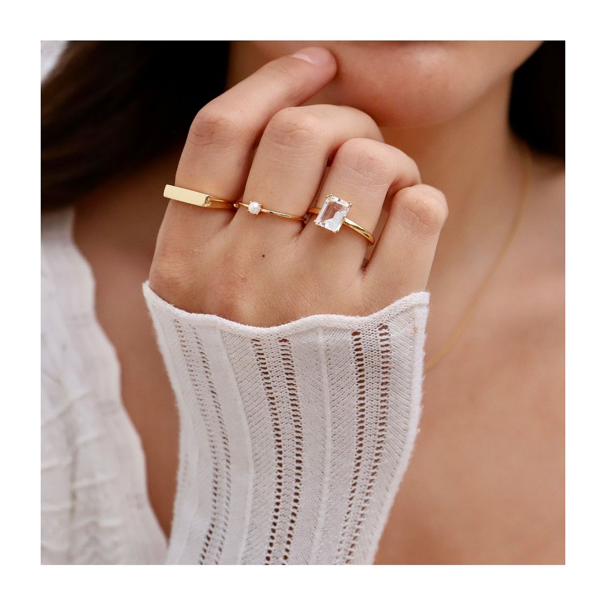 24Kae Ring met rechthoekige steen - 925 Sterling zilver geelgoud verguld 12409Y