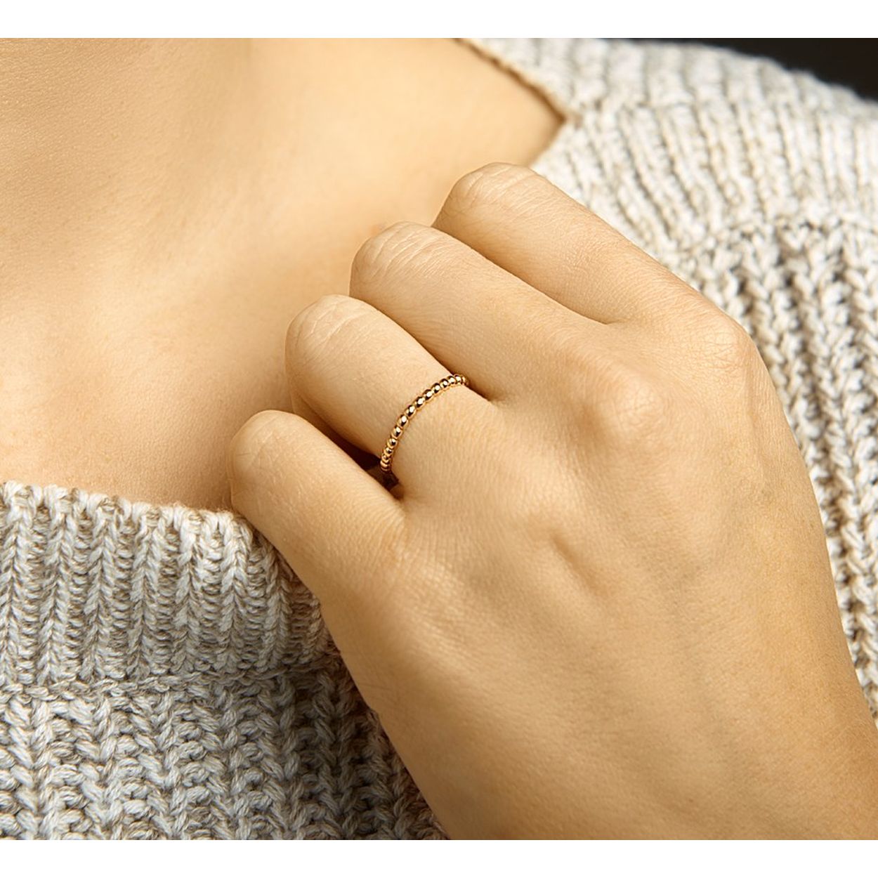 14k Rosegouden aanschuifring uitgevoerd met platte bolletjes. De ring heeft een breedte van 2mm.