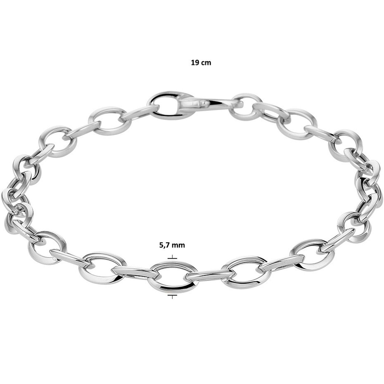 14k Witgouden anker armband met een draaglengte van 19cm en een schakelbreedte van 5.7mm. De armband heeft een poli afwerking en is uitgevoerd met een stevige karabijn sluiting.