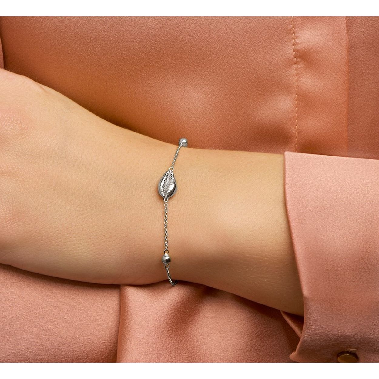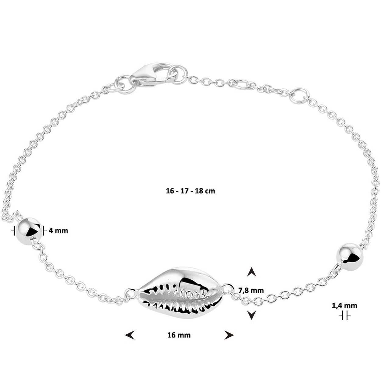 Gerhodineerd 925 zilveren armband uitgevoerd met een schelp en een stevige karabijn sluiting. De armband heeft draaglengtes van 16, 17 en 18cm.