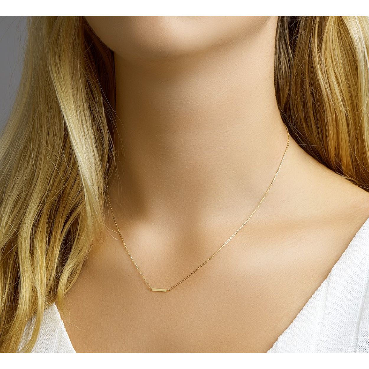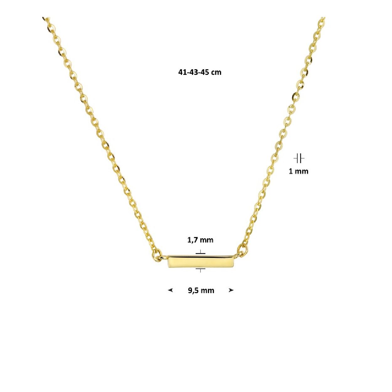 De collier is gemaakt van geelgoud en is goudkleurig. Het is een sieraad voor dames.