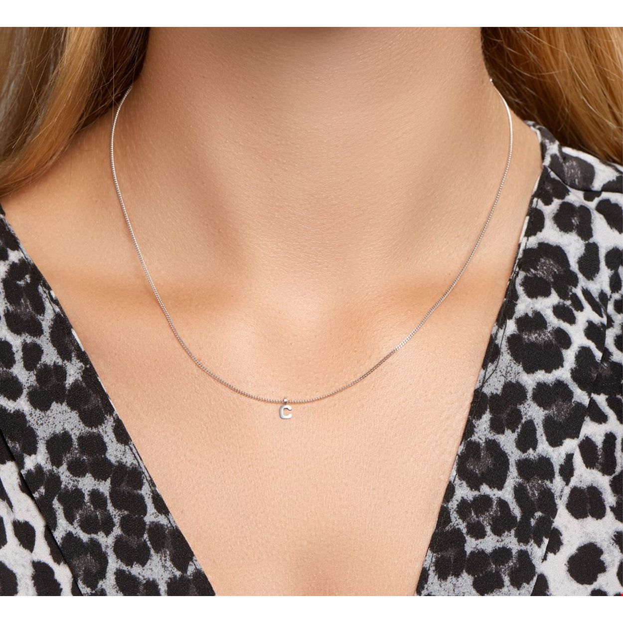 Gerhodineerd zilveren collier met de letter C. Het collier heeft een draaglengte van 41cm en een extensie van 5cm, uitgevoerd met een stevige karabijn sluiting. De hanger heeft een hoogte van 7.5mm en een breedte van 4mm. Tip: Geef dit persoonlijke collier cadeau aan een dierbare of geliefde.