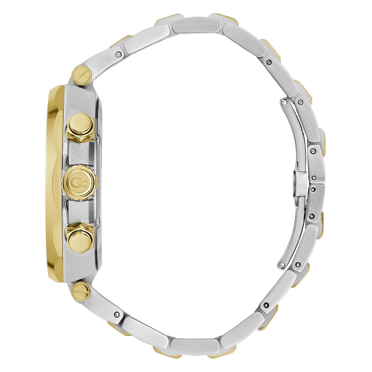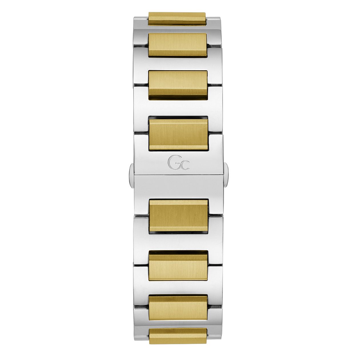 Dit sportieve two-toned herenhorloge uit de Gc Legacy serie is een echt fashionstatement! De goudkleurige chronograaf heeft een diameter van 44 mm en dankt zijn stoere look onder andere aan zijn groene wijzerplaat met goudkleurige accenten. De wijzers zijn voorzien van een Super-LumiNova coating. Dit exclusieve horloge is uitgevoerd met saffier gecoat mineraalglas en is tot 10 ATM waterdicht.