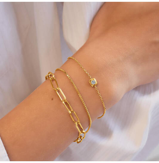Subtiel en verfijnd, deze armband heeft een zacht afgeronde, vierkante hanger met een zirkonia. Draag hem alleen voor een minimalistische look, of combineer hem met opvallende sieraden om de zachte uitstraling en doordachte stijl te benadrukken.