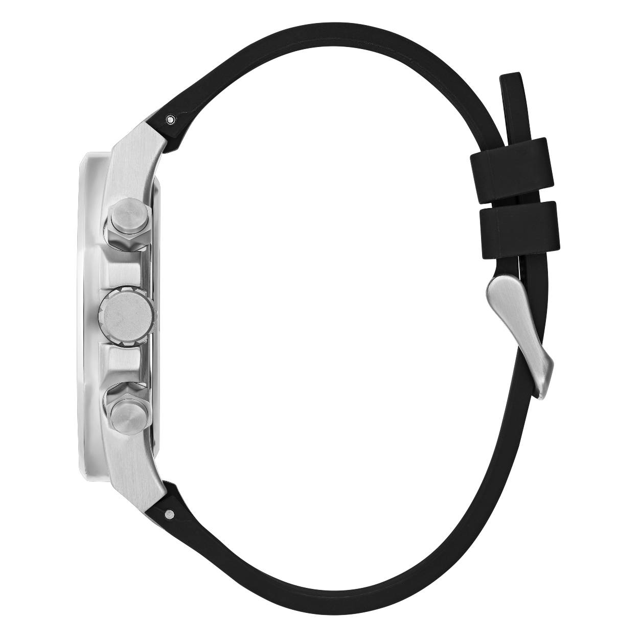 Classic meets modern, dit Guess heren "Empire" horloge, is een prachtig chronolook van 46 mm met een roestvrij stalen kast en zwarte silliconen band. De opvallende donkere wijzerplaat met vierkant patroon heeft dag, datum en 24 uursaanduiding. De Arabische cijfers en de zwarte accenten maken dit horloge helemaal af.  Dit model is 5 ATM waterbestendig en de wijzers zijn voorzien van Super-Luminova coating.