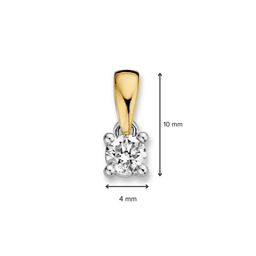 Bicolor gouden solitair hanger met 0,25crt. briljant in vierpootszetting.