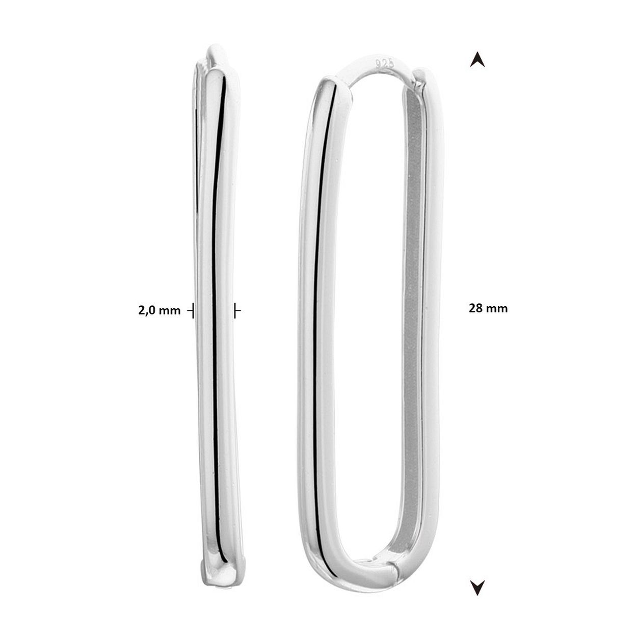 Gerhodineerd 925 zilveren klapoorringen uitgevoerd met een scharnier. De oorringen hebben een afmeting van 28x2mm.