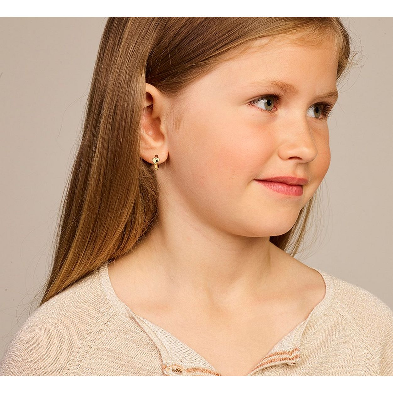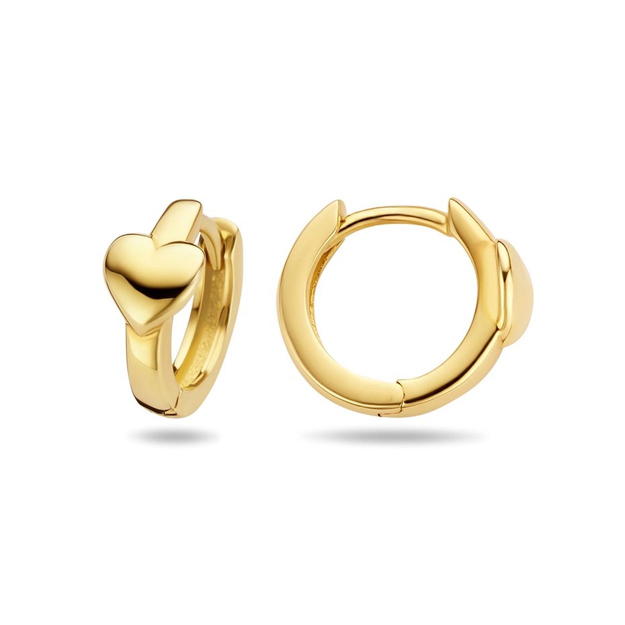 Geelgoud op 925 zilveren klapoorringen uitgevoerd met een hartje. De oorringen hebben een afmeting van 11.5x6mm.