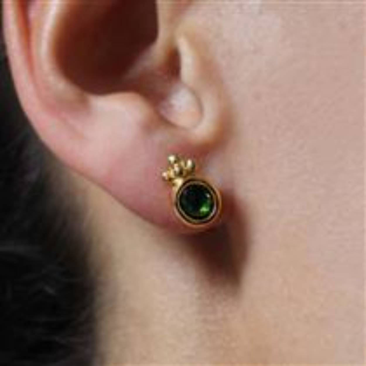 Deze geel goud vergulde oorknoppen hebben elk een 6 x 5 mm groene kwarts steen.