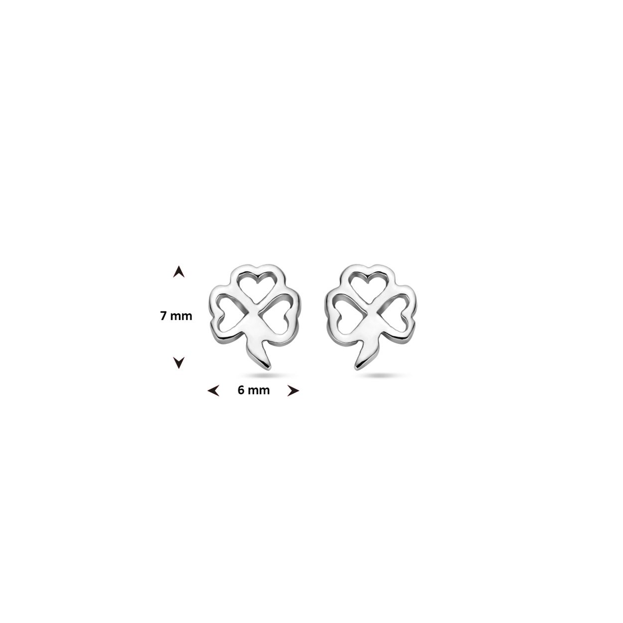 Gerhodineerd 925 zilveren oorknoppen uitgevoerd in de vorm van een klavertje. De oorknoppen hebben een afmeting van 7x6mm.