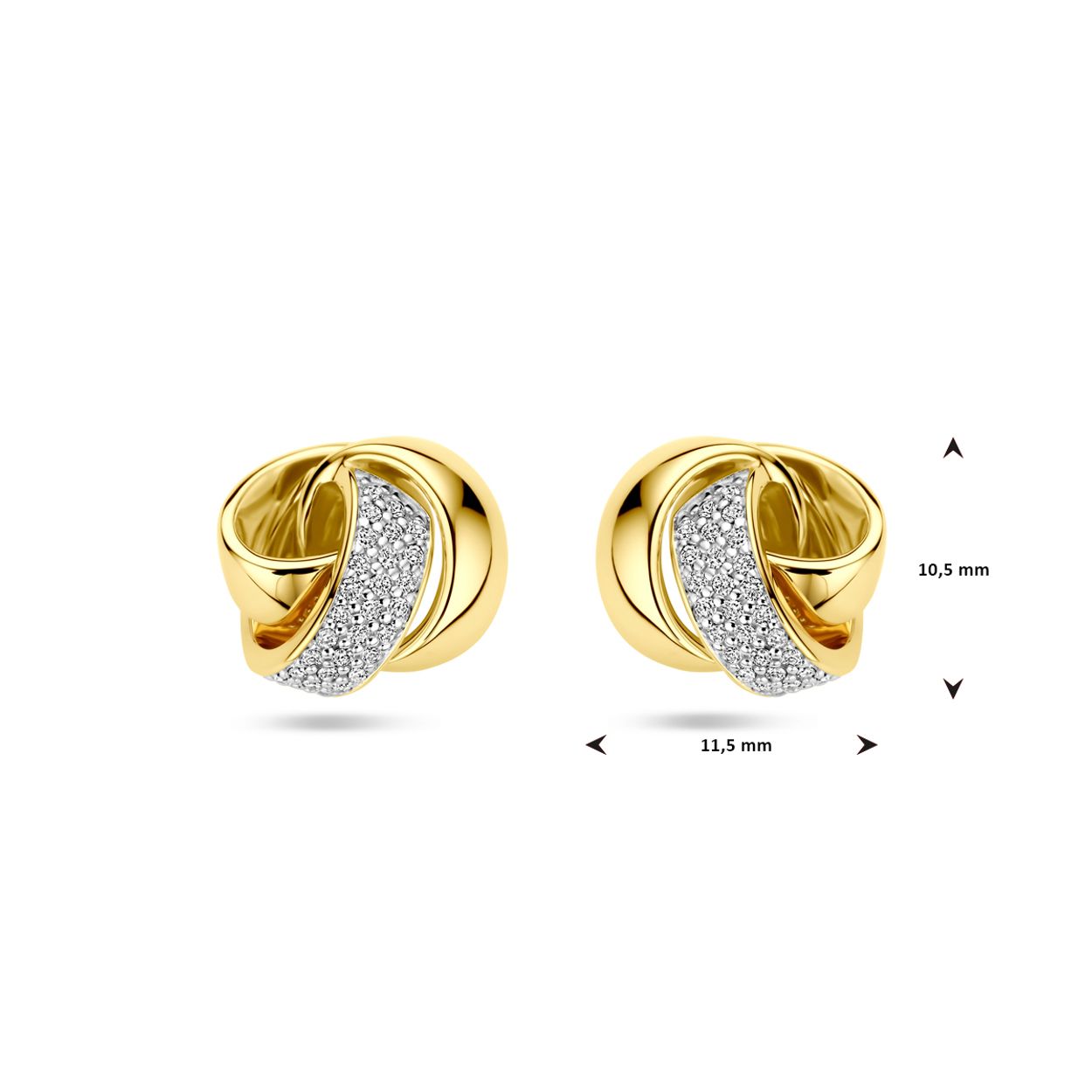 14k Geelgouden oorknoppen uitgevoerd met diamant. De oorknoppen hebben een afmeting van 10.5x11.5mm.