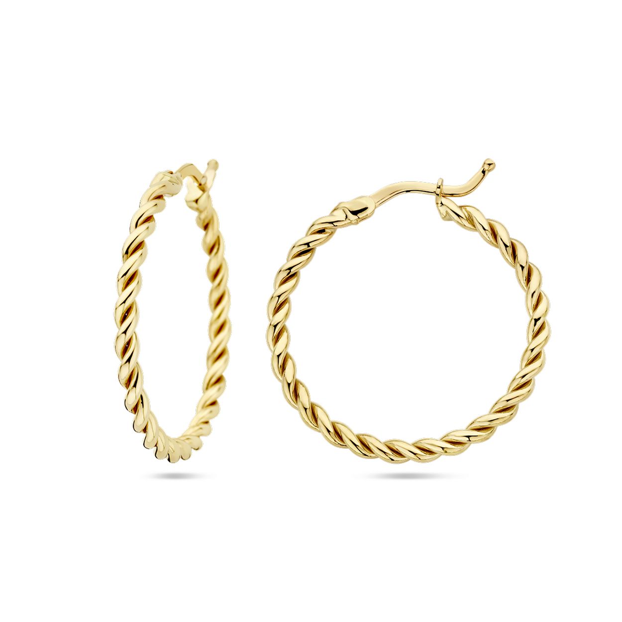 14k Geelgouden oorringen met een gedraaide buis. De oorringen hebben een diameter van 26mm.