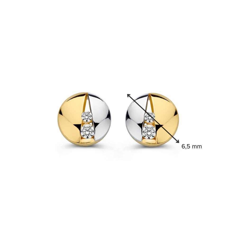 Bicolor geel- en witgouden oorstekers met zirkonia.