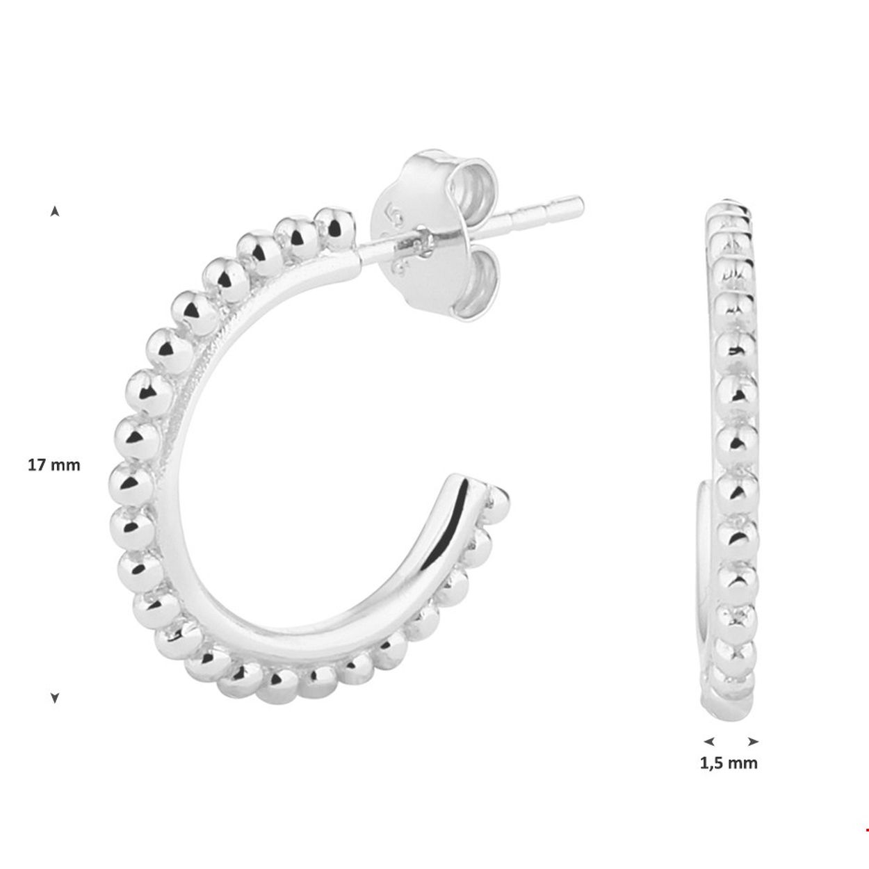 Gerhodineerd zilveren stekeroorringen met kleine bolletjes. De stekeroorringen hebben een afmeting van 17x1.5mm. Omdat ze een minimalistische uitstraling hebben zijn ze makkelijk te combineren met andere zilveren bolletjes sieraden. Info: Gerhodineerd zilver is door de rhodiumlaag beter bestand tegen verkleuren en krassen.