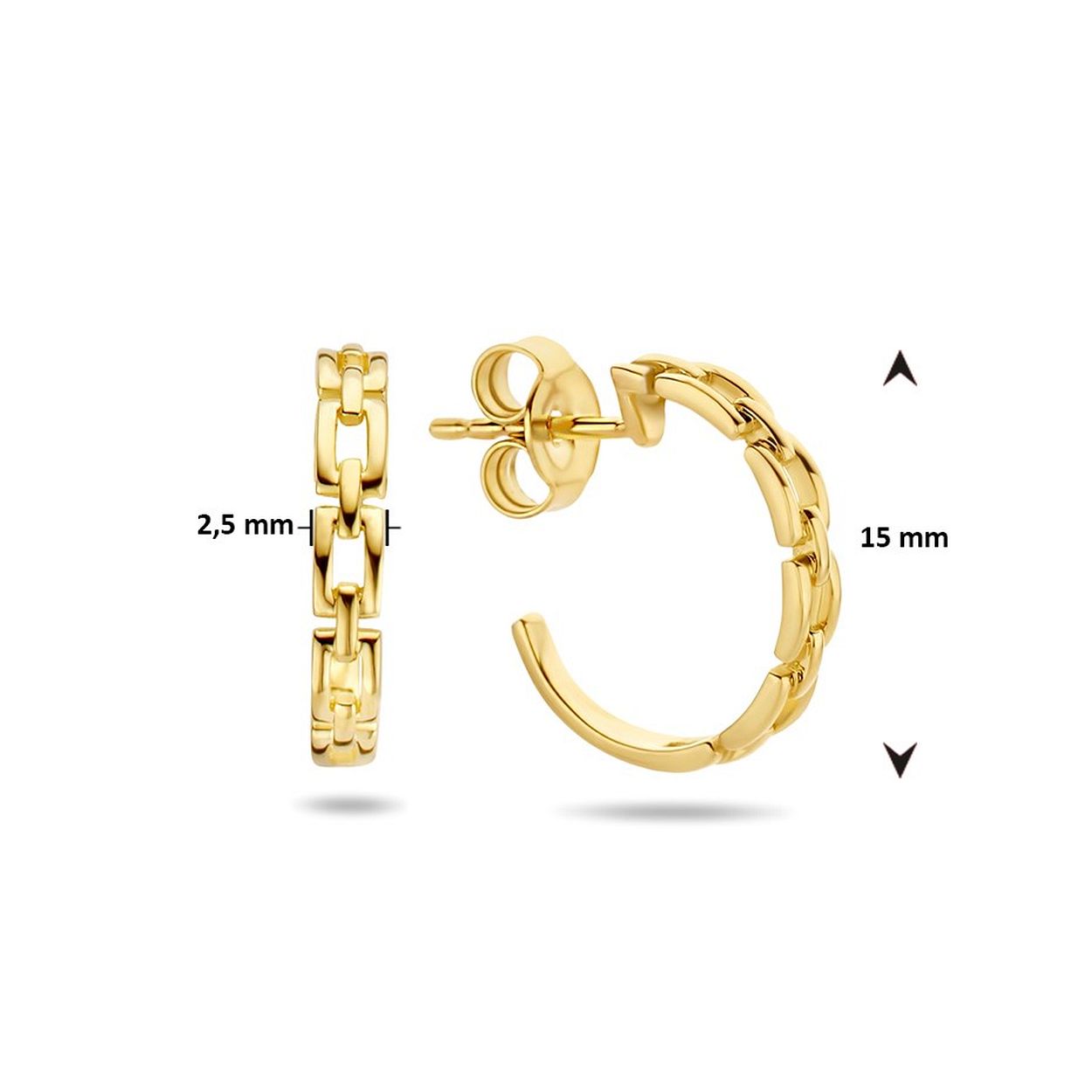 14k Geelgouden stekeroorringen uitgevoerd met een schakelmotief. De oorringen hebben een diameter van 15mm en een dikte van 2.5mm.