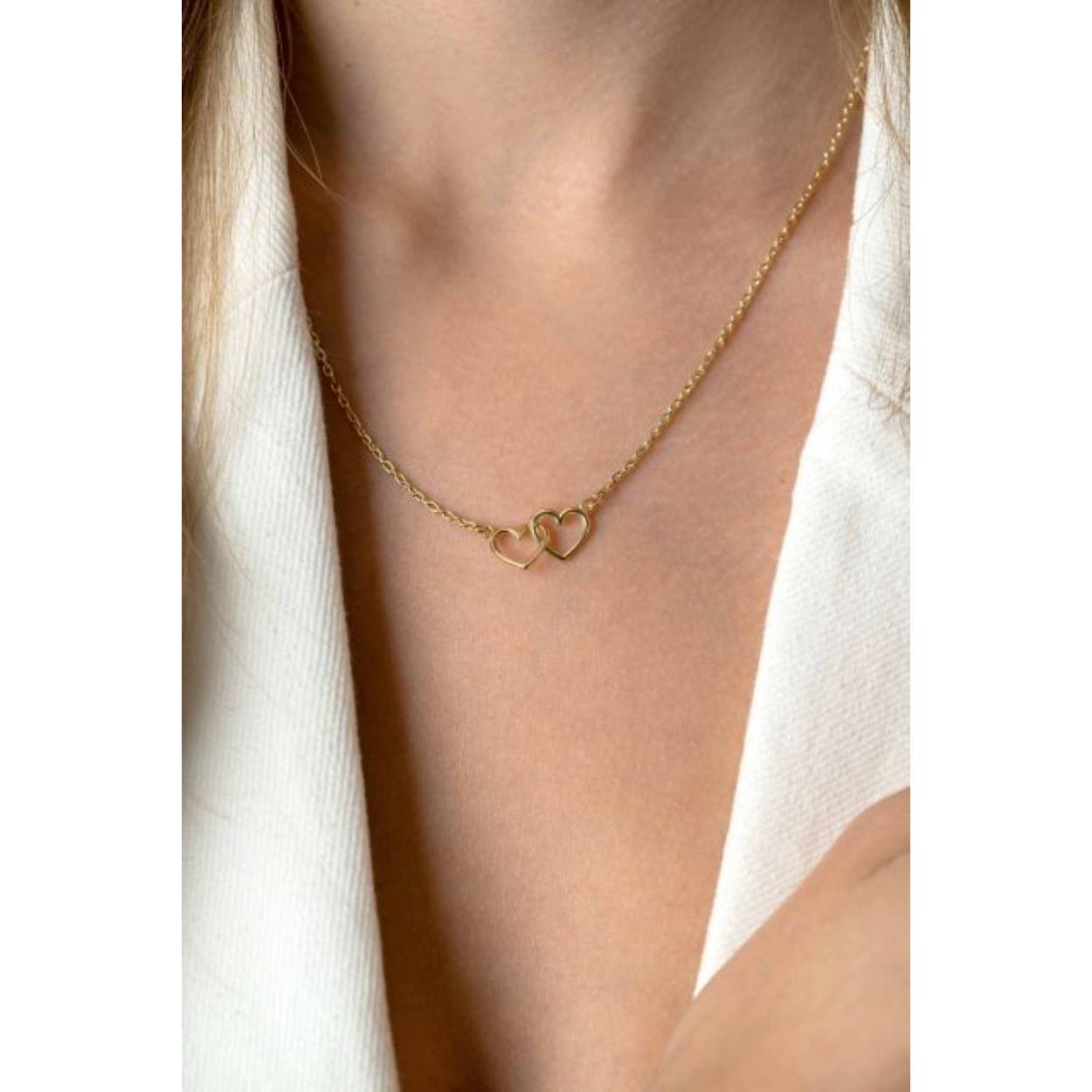 ZINZI gold plated zilveren ketting met 2 verbonden hartjes 40-45cm ZIC2513G