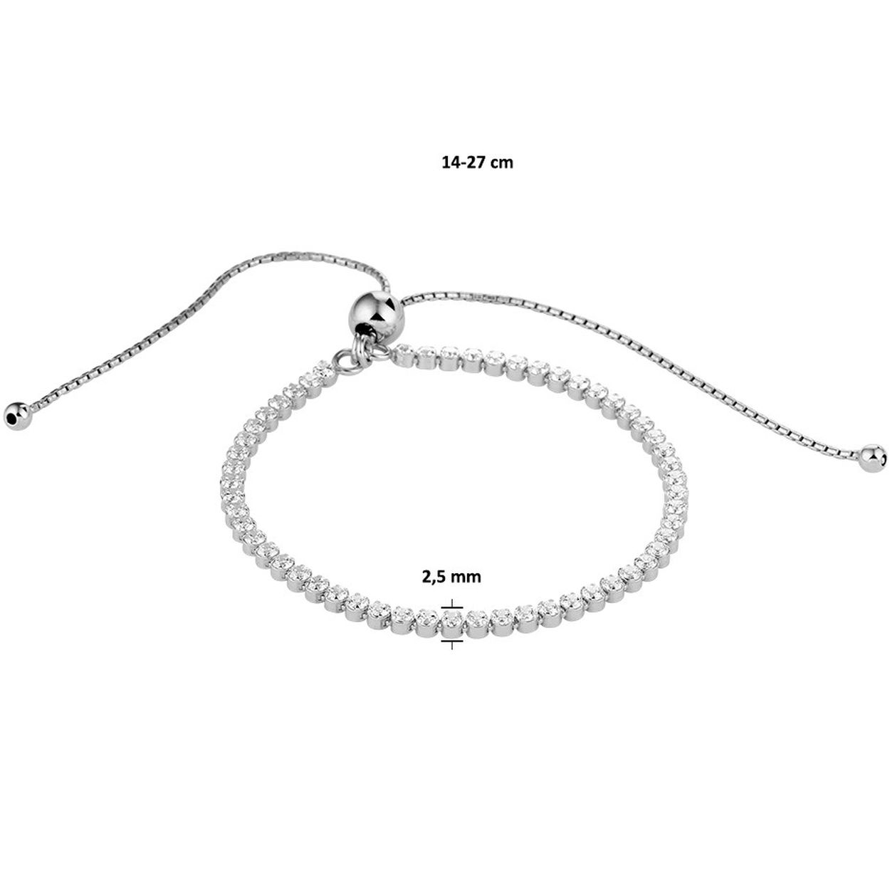 Gerhodineerd zilveren armband uitgevoerd met schitterende zirkonia. De armband heeft een draaglengte van 14 tot 27cm. Info: Gerhodineerd zilver is door de rhodiumlaag beter bestand tegen verkleuren en krassen.